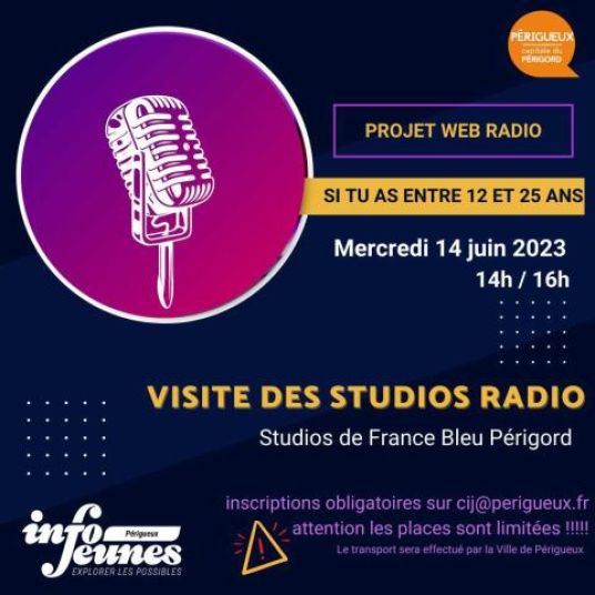 Dans le cadre d'un futur projet "Web Radio Jeunes", le Centre Info Jeunes propose aux jeunes de 12/25 ans de visiter des studios radio (France Bleu Périgord).