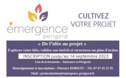 Leprochain parcours pré-incubation (dispositif gratuit)aura lieu du 21 septembre au 14 décembre 2023, en itinérance sur l’ensemble des Périgords.