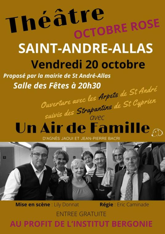 THEATRE à Saint Cyprien dans le cadre d'octobre rose : UN AIR DE FAMILLE