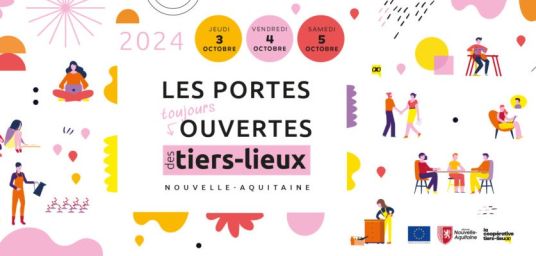 La Coopérative Tiers-Lieux et la Région Nouvelle-Aquitaine organisent la 4ème édition des "Portes toujours ouvertes des tiers-lieux en Nouvelle-Aquitaine" qui se tiendra les 3, 4 et 5 octobre 2024.
