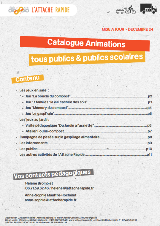 L’Attache Rapide est une association créée le 20 avril 2020. Elle a pour objet la réduction des déchets en Dordogne et est basée à Bergerac et Périgueux.