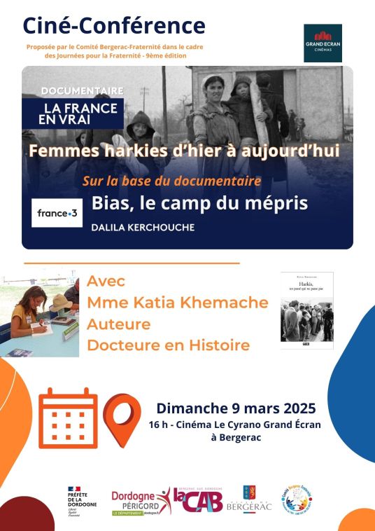 Le comité Bergerac fraternité est heureux de proposer dans le cadre des journées pour la fraternité 9ème édition, un ciné-discussion sur le thème des femmes harkies d'hier à aujourd'hui.