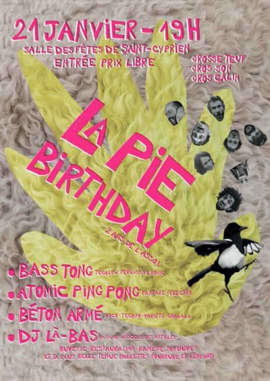 Concert de soutien à La Pie pour l'anniversaire des 2 ans de l'association. BASS TONG – ATOMIC PING PONG – DJ LA-BAS. Grosse teuf, gros son, gros câlin !